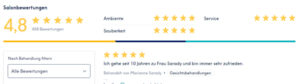 Sichern Sie sich Ihren Wunschtermin über die Plattform treatwell. Hier sind alle angebotenen Leistungen aufgelistet mit Preisen und Dauer der Behandlung.
